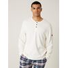 Klassisk bestefarstrøye i myk kvalitet med vevet bånd i knappestolpen. Trøyen har en logobadge på ermet og en liten tab i siden. Regulær passform. Modellen er 185 cm høy og har på seg str L.