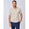 Polo t skjorte i behagelig melert bomull med lin. Polotrøyen ha rkort erm, krage og v hals, ribbestrikkede vrangborder og en liten logotab i siden. Avslappet passform.