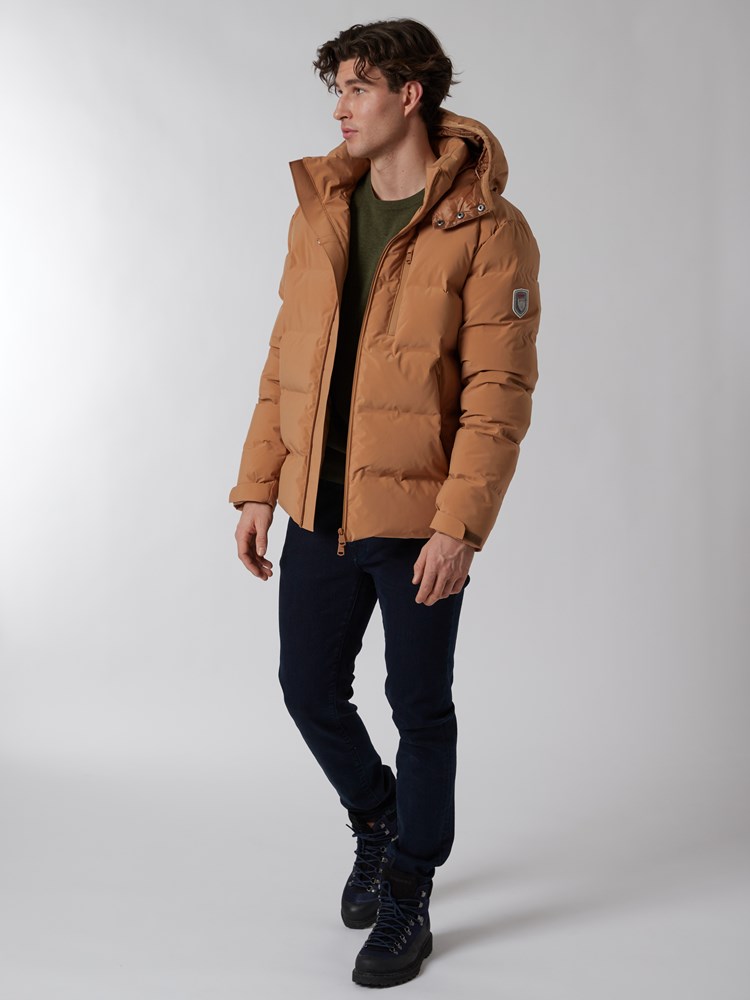 Lun dunjakke med sømløse tapede tuneller. Jakken har 10000 mm vannsøyle og 10000 mvp pusteevne og 80/20 duckdown. 550 Cuin. Integrerte refleksbånd i sidene, nakkehempe innvendig og regulerbar mansjett på erm med elastisk rib på innsiden. Jakken har waterproof glidelåser med 2 way glidelås foran, gode lommer med mykt fôr og glidelås i front. Avtagbar hette med tape langs kanten. Logobadge på ermet og tricolorefarget detalj på glidelåsstolpe innvendig. To innerlommer hvorav en med glidelås. Modellen er 187 cm høy og bruker str L.