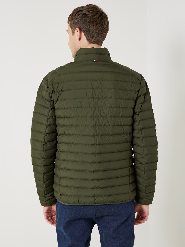 Klassisk komprimerbar lightweight favoritt til helårsbruk enten alene eller som varmeisolerende lag under en skalljakke. Den lette og varme dunjakken har matt finish, ton i ton fôr, flere funksjonelle lommer og vevet logobadge på venstre erm. Liten tricolorefarget tab i nakken. Jakken er i 90/10 andedun med dunspenstpå 650 cuin, har glidelås i front, og logotert elastikk på ermkant og i kanten nederst. Praktisk opphengshempe i nakken. Modellen er 189 cm høy og bruker str M.