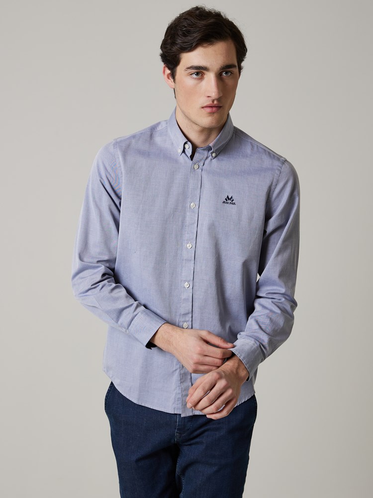 Myk og behagelig skjorte i 100% bomull med brodert logo på brystet. Skjorten har regulerbar mansjett, button-down krage, knappestolpe med lyse logoknapper og dekorativt kontraststoff inni krage, nakke og i mansjetten. Lettstelt kvalitet. Regular Fit Modellen er 189 cm høy og bruker str M.