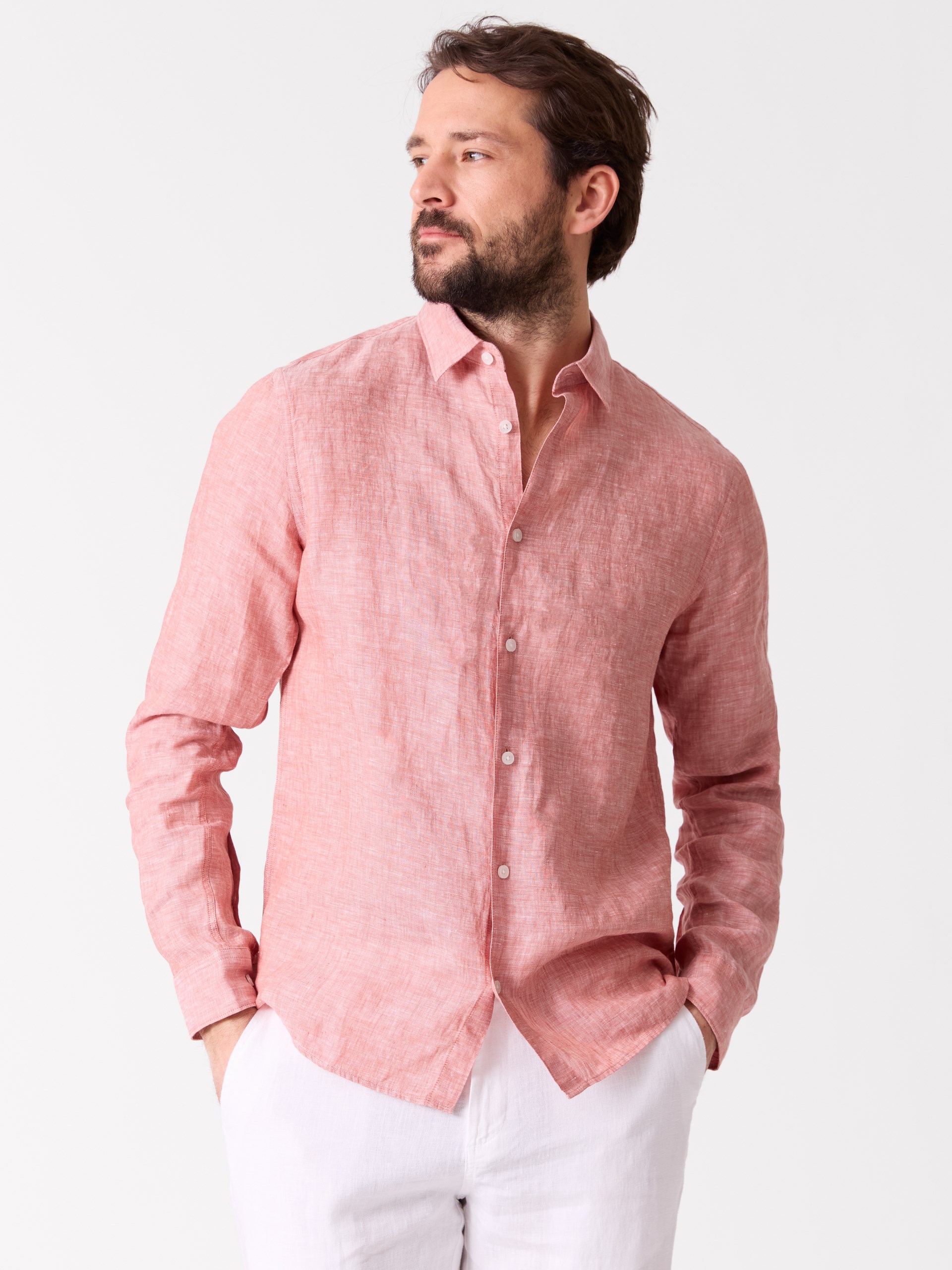 Modellen er 190cm og har på seg str MConrad linskjorte