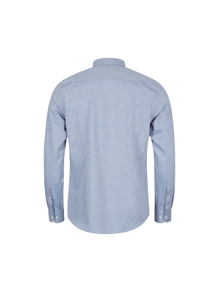 Komfortabel skjorte i fiskebensvevet bomullskvalitet med fitted passform og lett vasket finish. Skjorten har ton i ton logoknapper, lite logobroderi på brystet og mansjett med knapp og regulering. Kontraststoff inne i mansjett og krage. Skjortekragen har innsydd krageavstiver. Modellen er 184 cm høy og har på seg størrelse M.