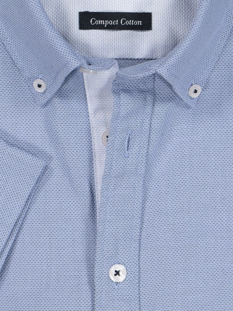 Klassisk kortermet skjorte i lettstelt strukturvevet bomull med buttondown krage, innvendig kontrastfarget piping og nakkehempe. Skjorten har ton i ton logobroderi på brystet, lyse knapper og regular passform. Modellen er 188 cm høy og bruker str L.