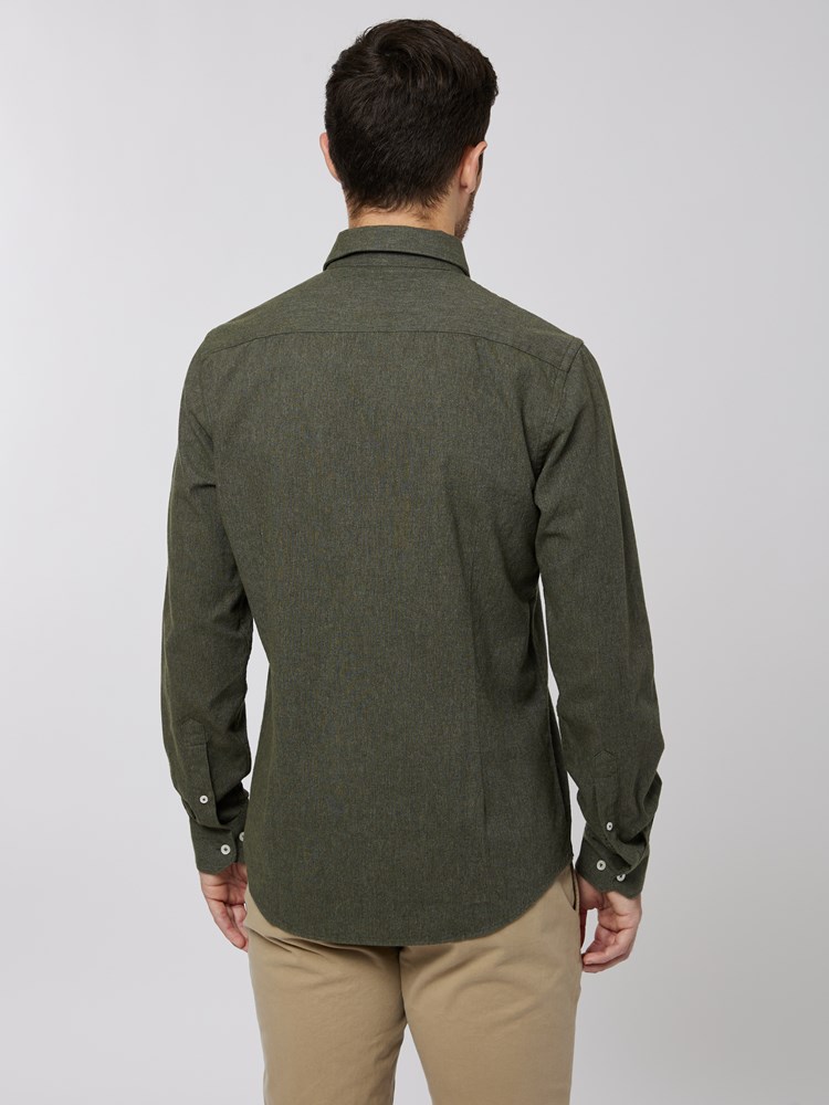 Komfortabel skjorte i lett børstet oxford kvalitet med fitted passform og lett vasket finish. Skjorten har ton i ton logoknapper, lite logobroderi på brystet og mansjett med knapp og regulering. Kontraststoff inne i mansjett og krage.