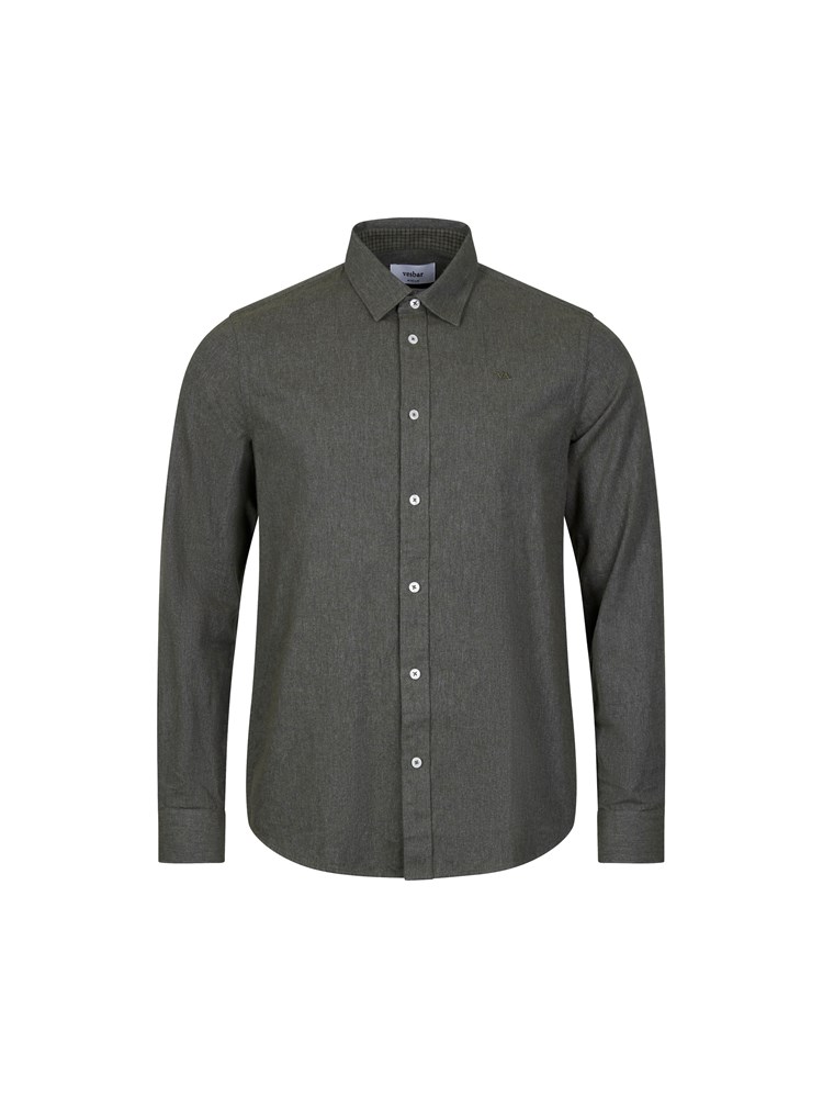 Komfortabel skjorte i lett børstet oxford kvalitet med fitted passform og lett vasket finish. Skjorten har ton i ton logoknapper, lite logobroderi på brystet og mansjett med knapp og regulering. Kontraststoff inne i mansjett og krage.