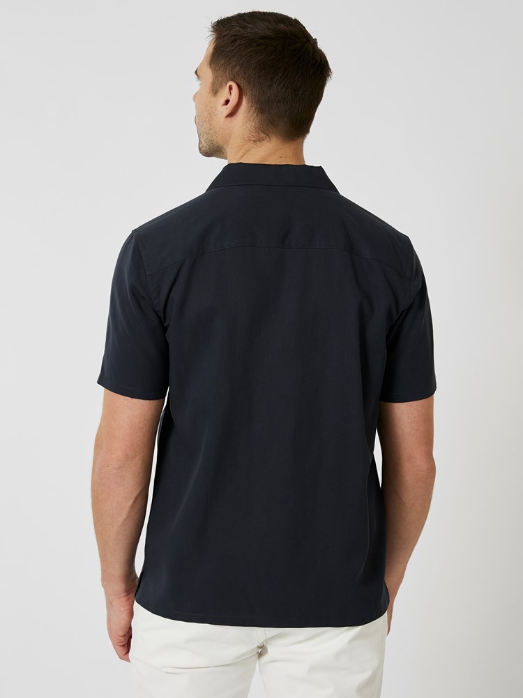 Kortermet skjorte i komfortabel twillvevet lyocell. Skjorten har resortkrage, brystlomme, enkel knappestolpe med lyse knapper, og splitter i sidene. Avslappet passform.
