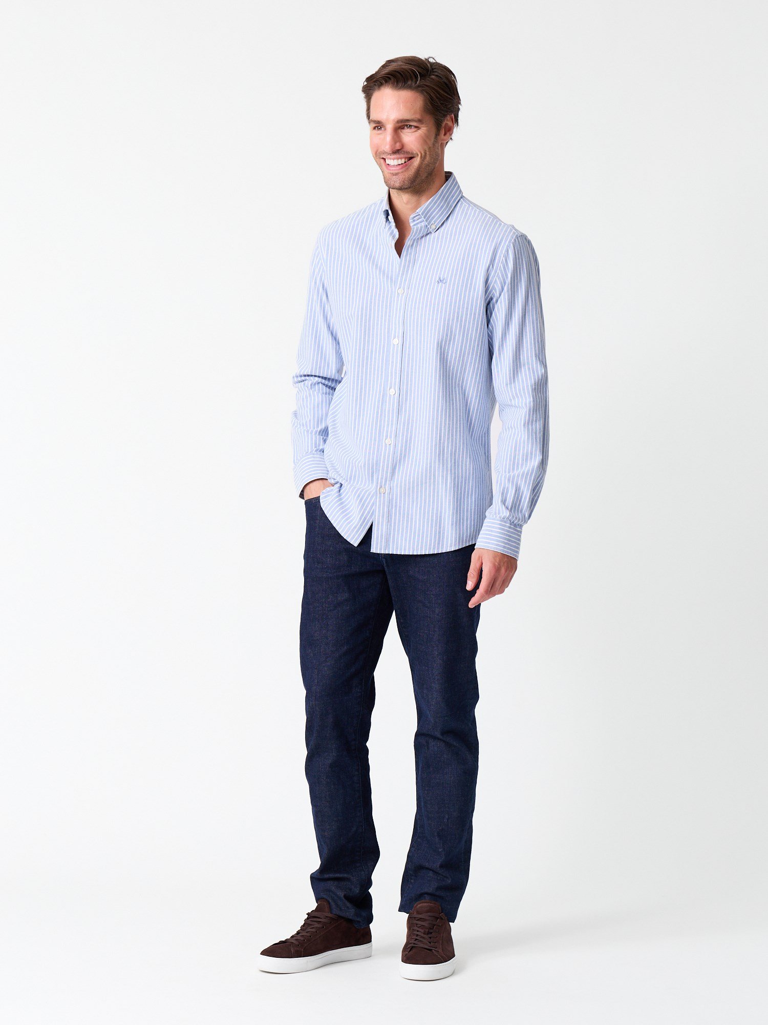 Stripet oxfordskjorte med behagelig børstet finish