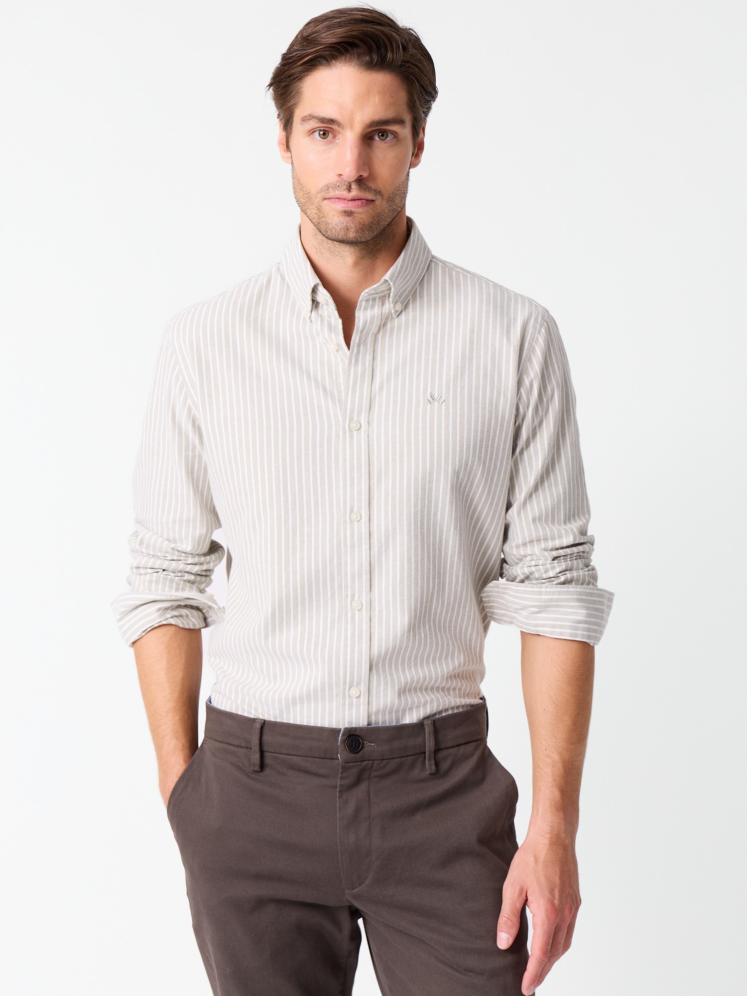 Stripet oxfordskjorte med behagelig børstet finish