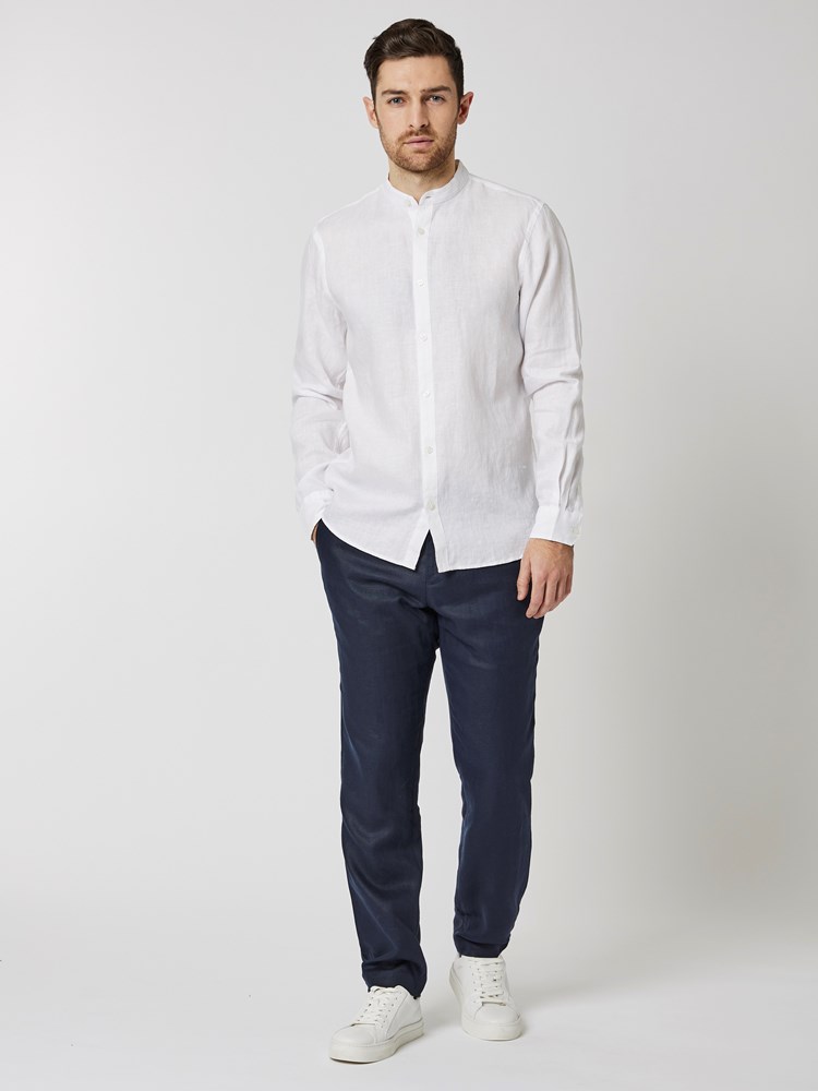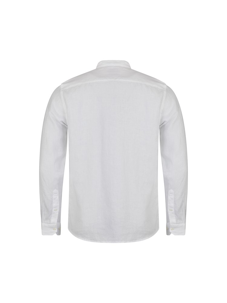 Skjorte i behagelig vevet lin med stand up collar og lang erm med regulerbar mansjett. Skjorten har knappestolpe i front med ton i ton knapper og regulær passform