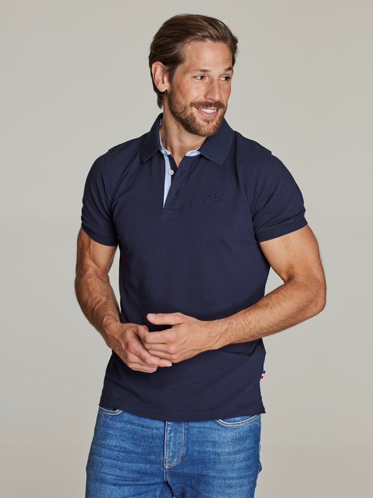 Klassisk kortermet pique i ekstra lett og myk bomullstretch for god komfort. Piqueskjorten har dobbel krage med kontrast med stripe under, små splitter i sidene, fine vevede detaljer både inni nakken og på stolpen som har tre knapper. Brodert logo på brystet og vevet tricolore flagg i siden. Modellen er 191 cm høy og bruker str L.