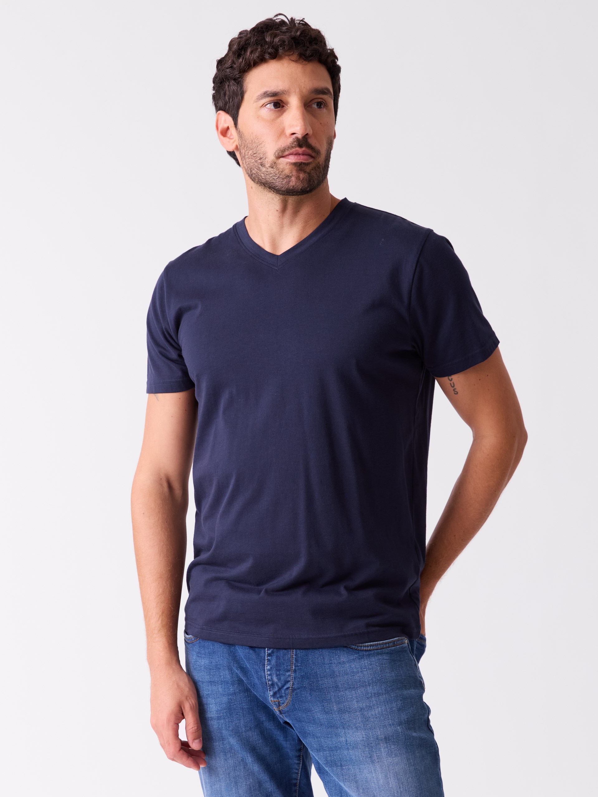 Modellen er 188cm og har på seg str MRyan v-hals t-skjorte