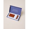 Sett med nøkkelring og kortholder med preget logo i skandinavisk kuskinn. Kortholderen har 5 lommer og settet leveres i gaveeske. Produseres i Sverige av overskuddsmateriale fra produksjon av belter