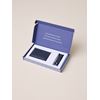 Sett med nøkkelring og kortholder med preget logo i skandinavisk kuskinn. Kortholderen har 5 lommer og settet leveres i gaveeske. Produseres i Sverige av overskuddsmateriale fra produksjon av belter