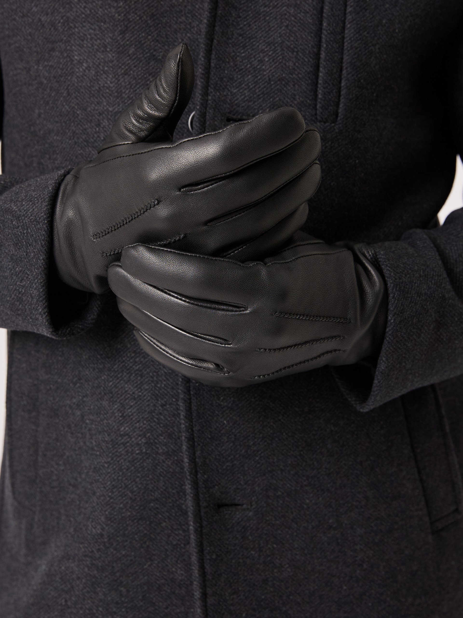 Skinnhanske i mykt geiteskinn med dekorsømmer. Hansken har strikket fôr i 100% ull. God passform