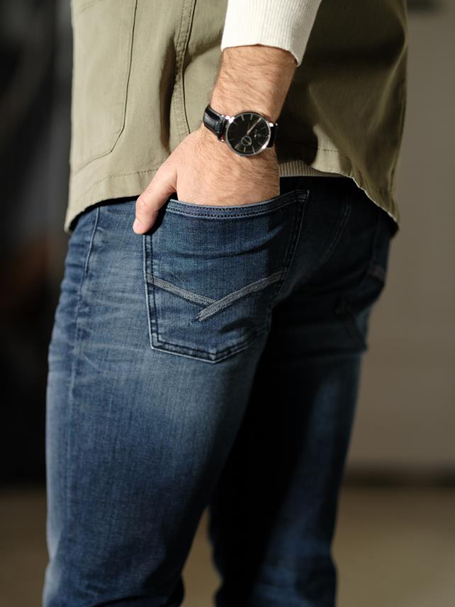 - Velg gjerne en jeans med stretch, det gjør buksen ekstra komfortabel og hjelper også jeansen med å holde fasongen etter vask