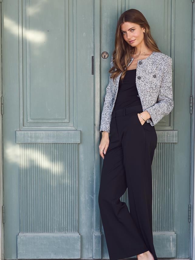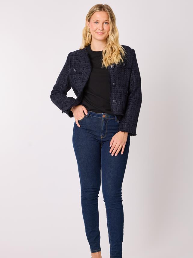 En blazer er alltid fint til og selv om det gjør antrekket mer formelt og pyntet, vil jeansen gi antrekket et mer lekent og avslappet utrykk.