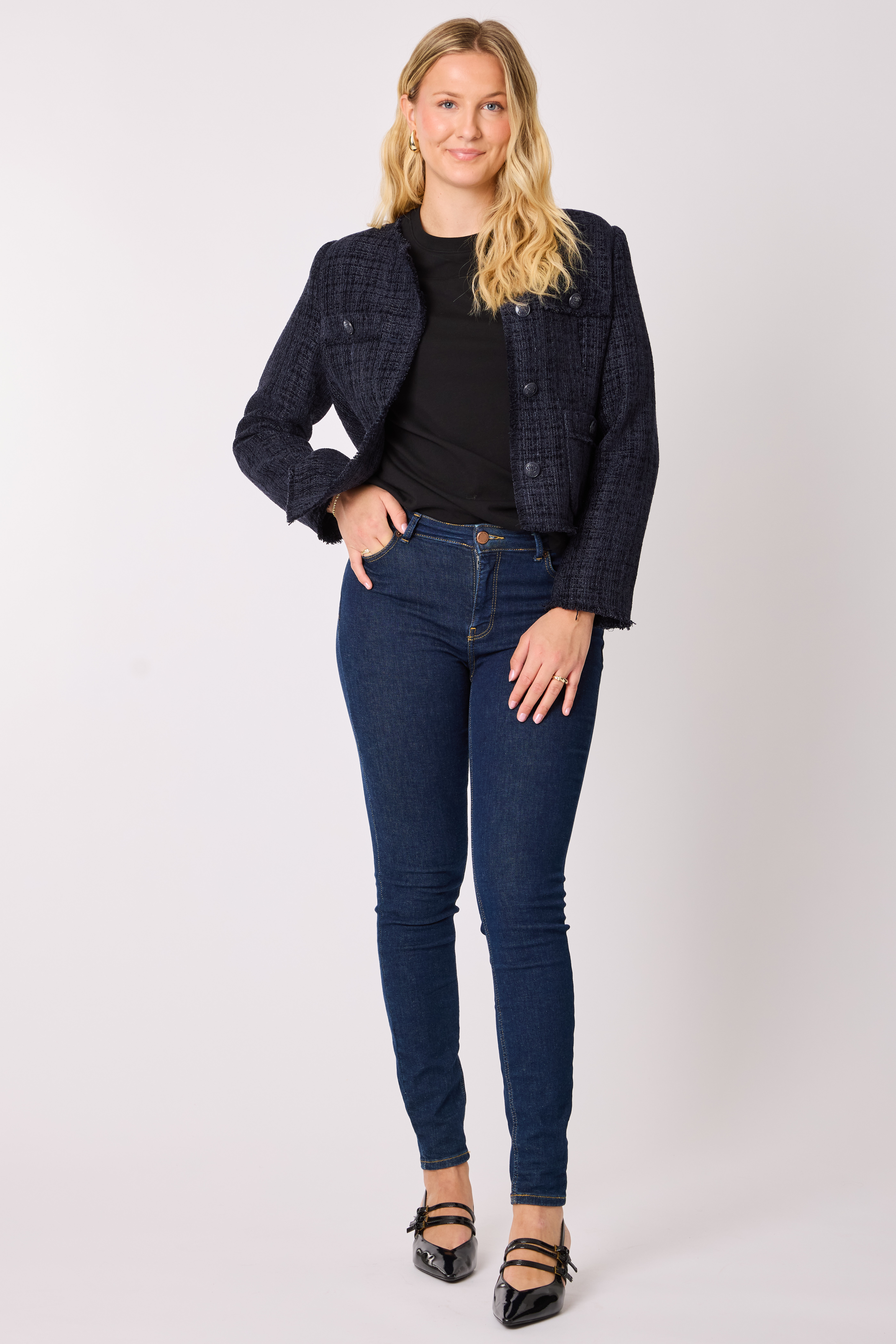 Kombinasjonen mørk blå jeans og overdel i en festlig kvalitet slår aldri feil, og ved å matche jeansen med en nydelig mønstret bluse vil du alltid se fresh ut. For en mer sofistikert look, gå for en blazer utenpå så holder du deg stilfull hele sesongen.