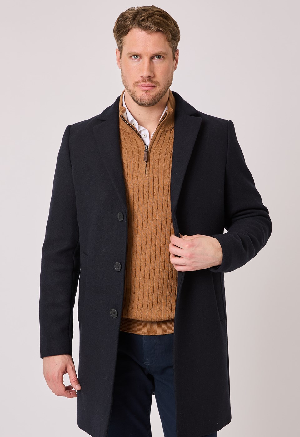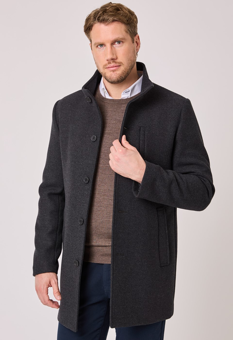 Klassisk frakk med skråkrage i behagelig ullblanding. Gir et stilfullt uttrykk og er perfekt for et møte på jobben eller til en penere anledning.