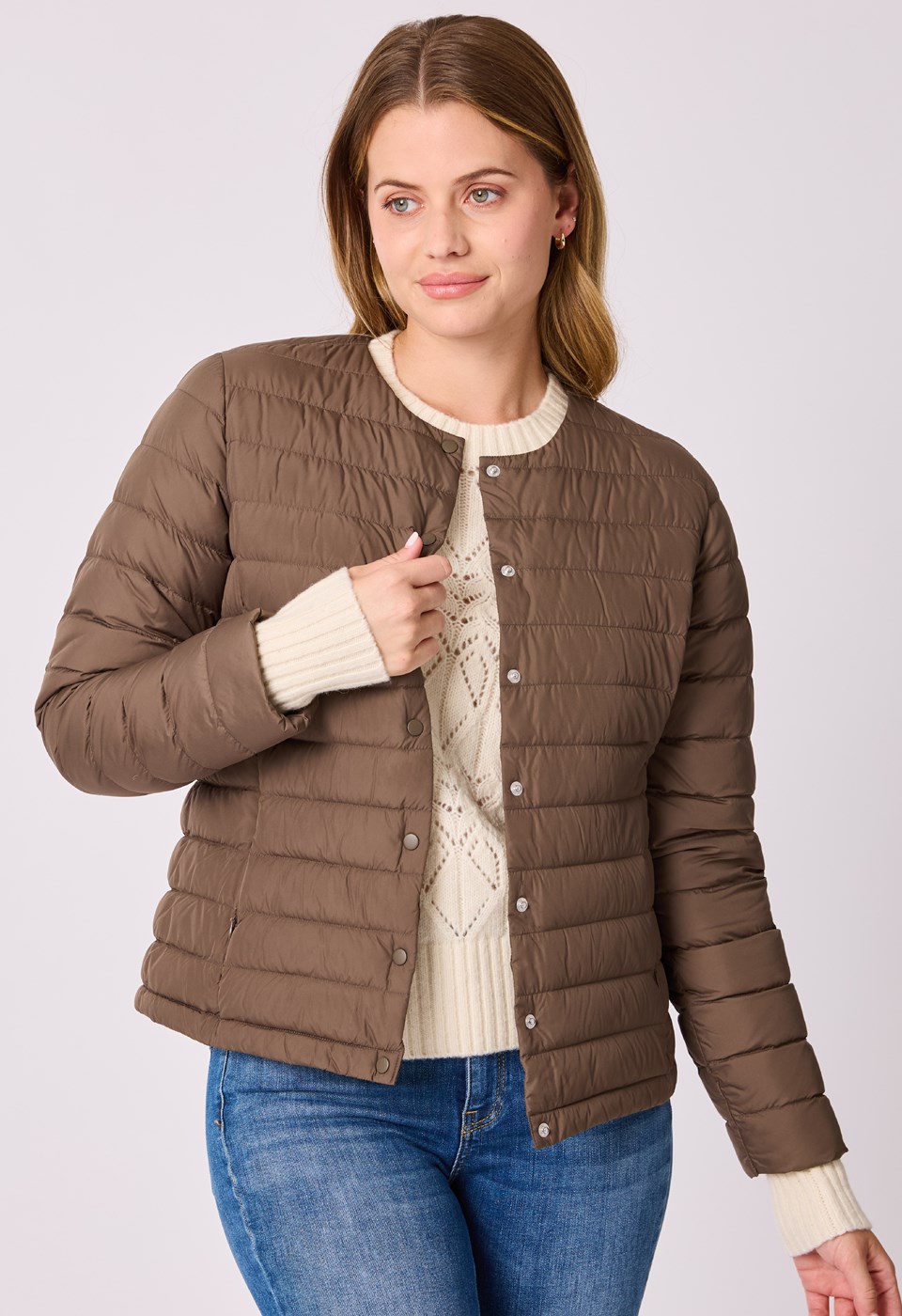 Kort og lett dunjakke i 80/20 dun og fjær. Med en feminin passform og enkle detaljer er den like fin for seg selv som under en kåpe.