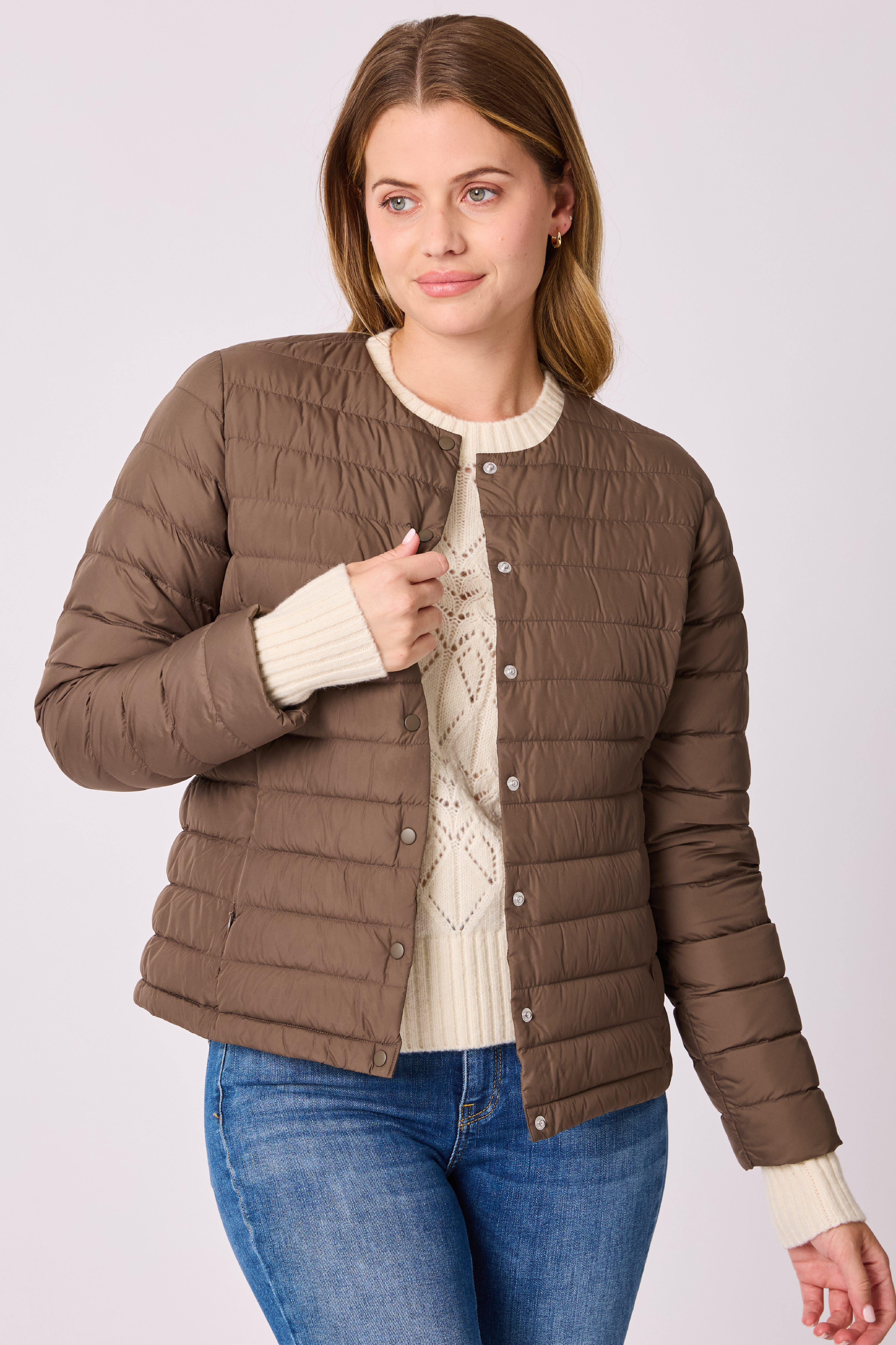 Kort og lett dunjakke i 80/20 dun og fjær. Med en feminin passform og enkle detaljer er den like fin for seg selv som under en kåpe.