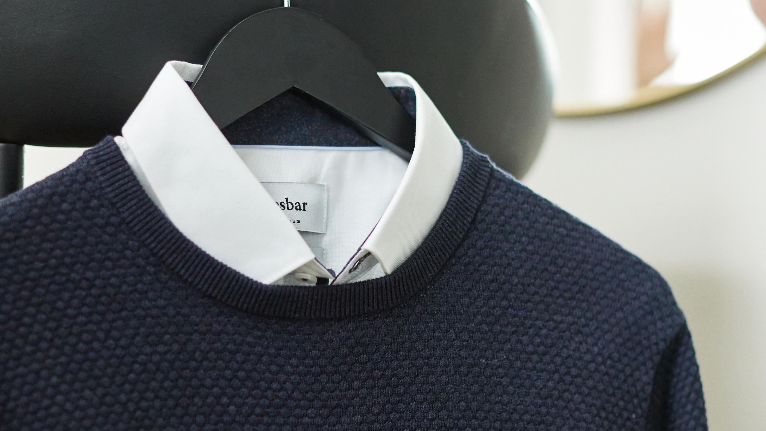 Kombiner sesongens genser med en skjorte i samme farge for et trendy antrekk som passer til de fleste anledninger. Dette er et klassisk antrekk som er fint nå til høsten.