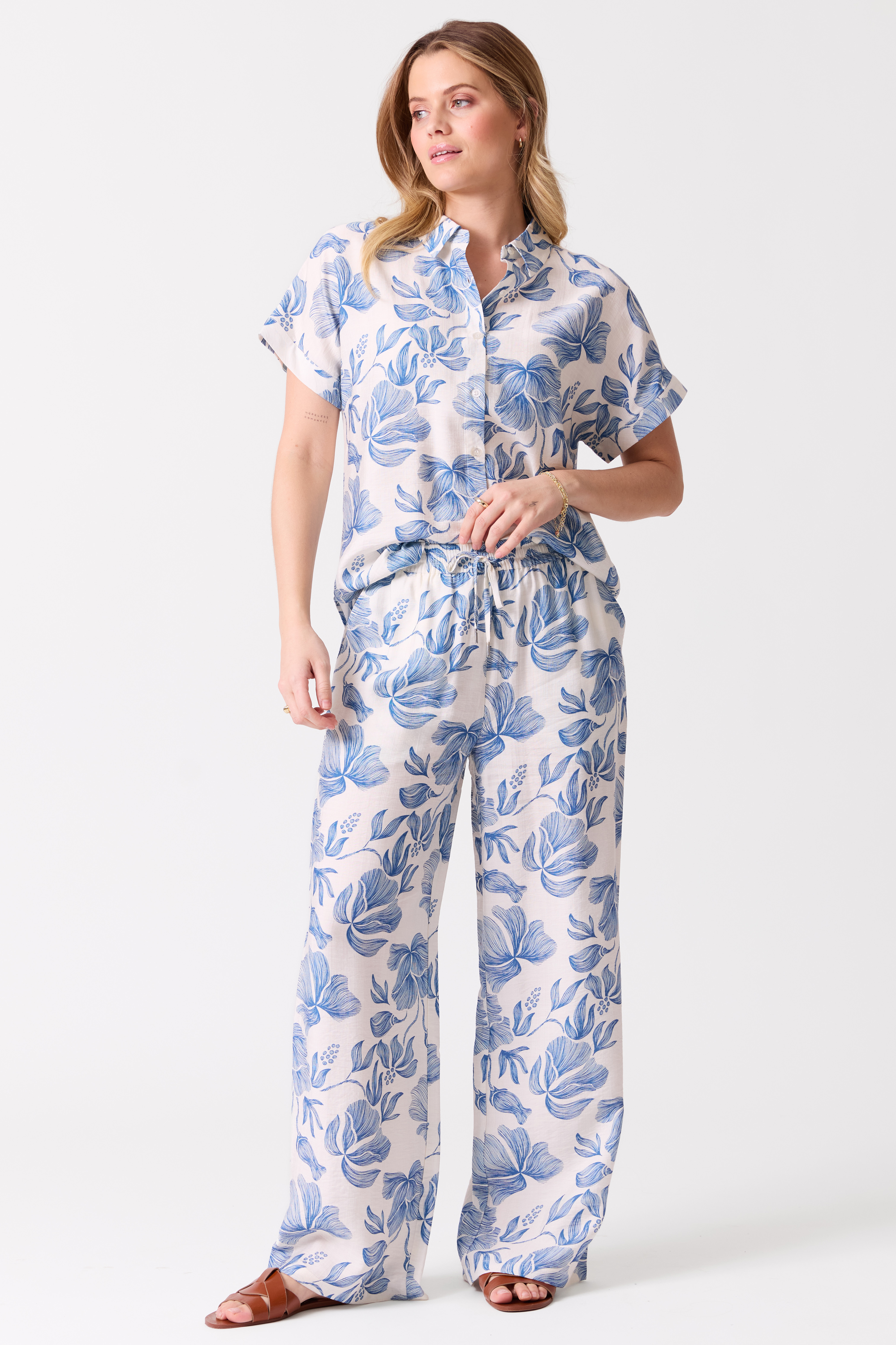 En tøff bluse med detaljer gir dette antrekket et kult og festlig preg. Style med sandaler og litt tilbehør, og du er klar for sommerens aktiviteter.